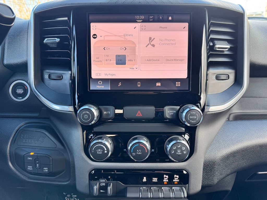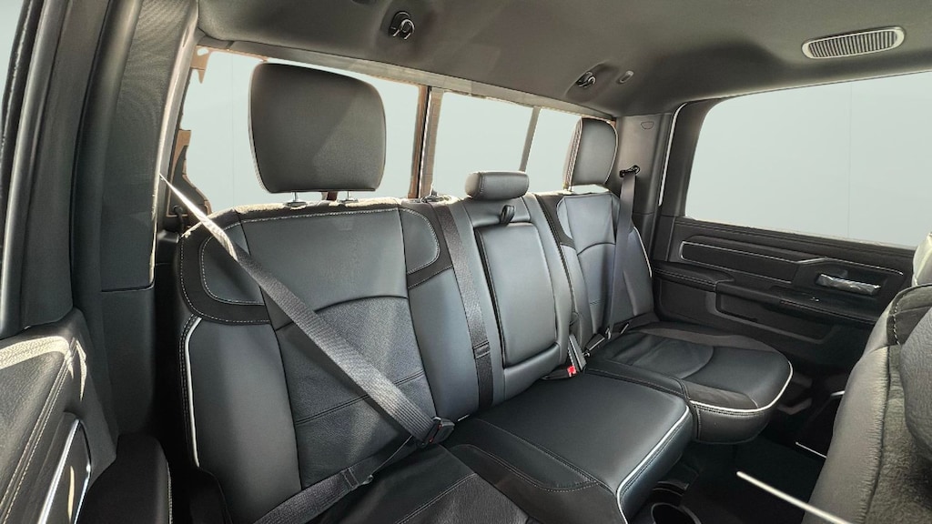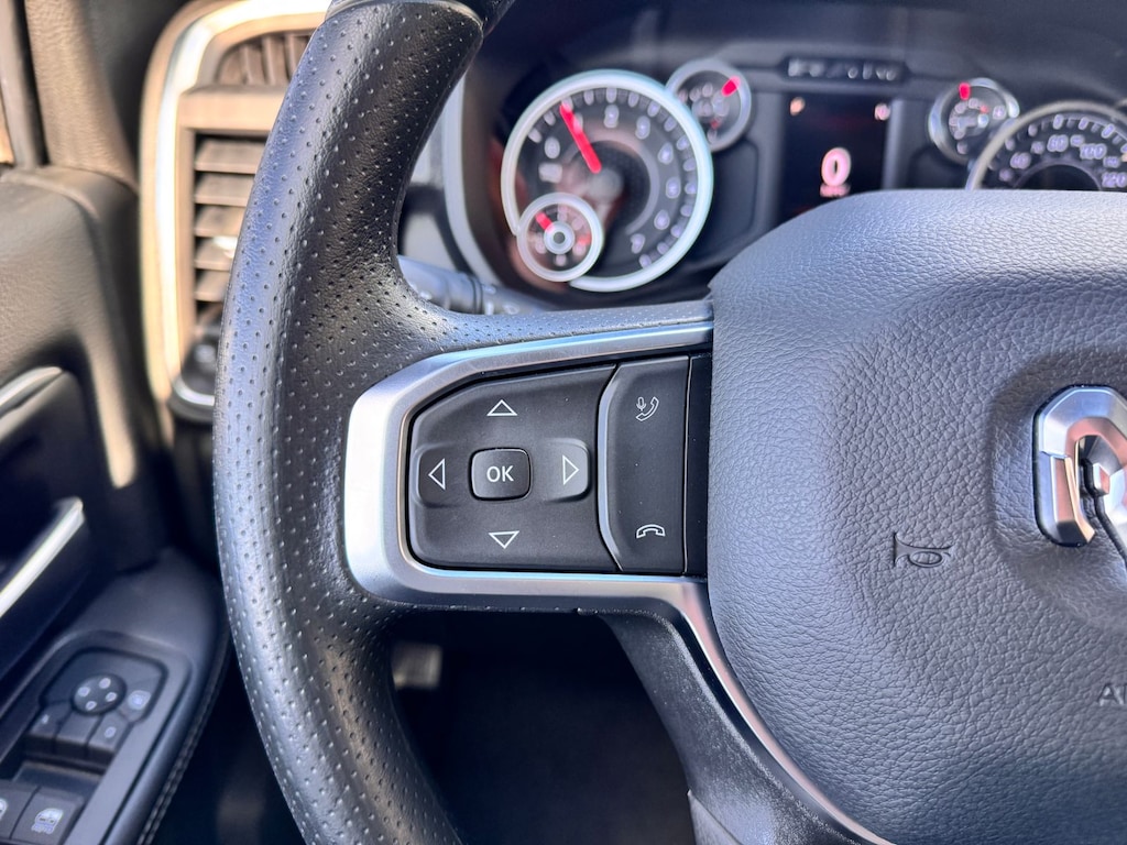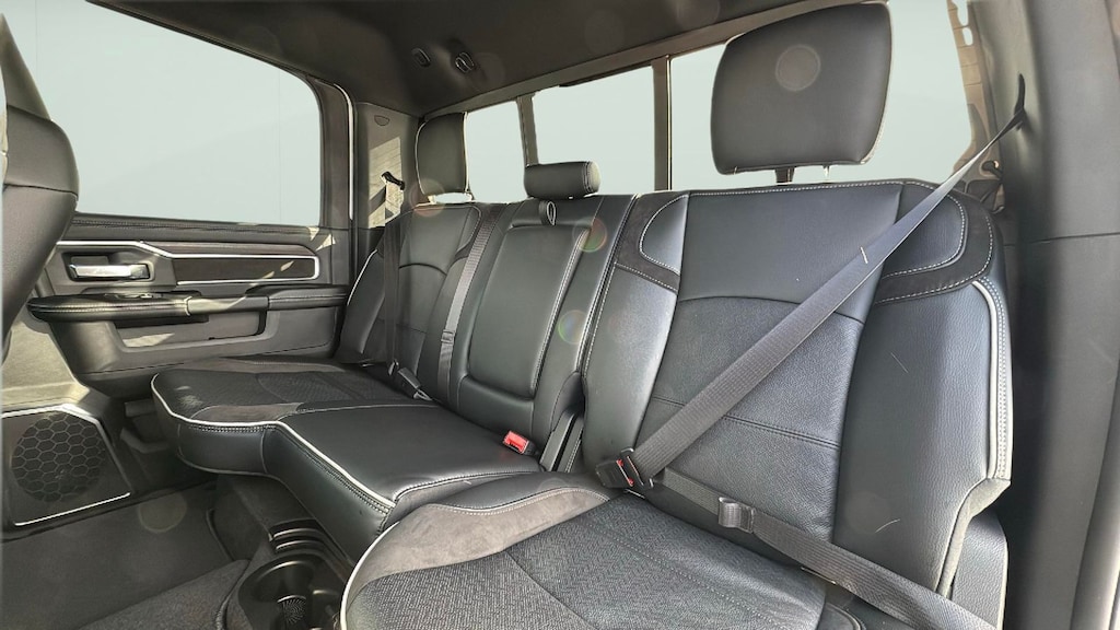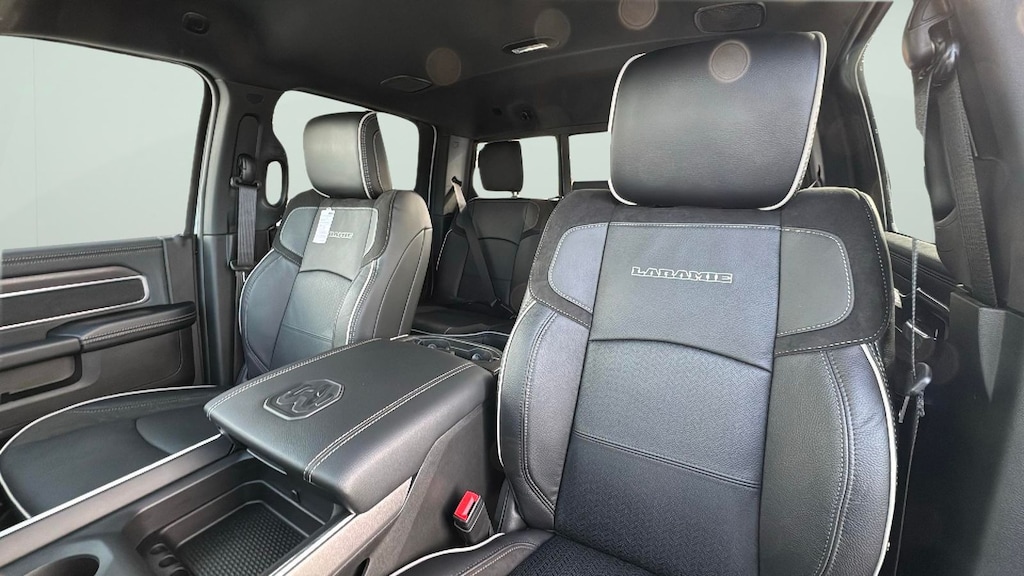 The interior of this Ram 3500 Laramie is a sanctuary of refined luxury, with premium leather-trimmed bucket seats, a heated steering wheel, and a 12-inch Uconnect 5 Navigation display that puts cutting-edge technology at your fingertips. The spacious cabin offers ample room for passengers and cargo, ensuring your every journey is comfortable and convenient.