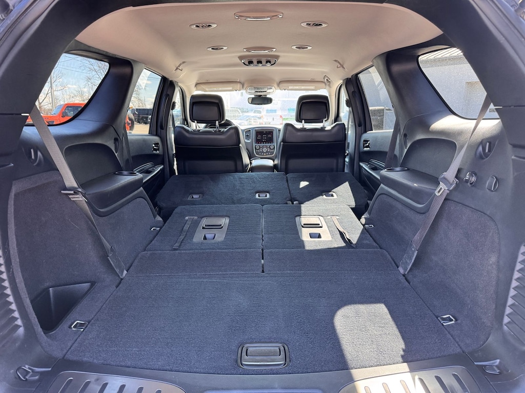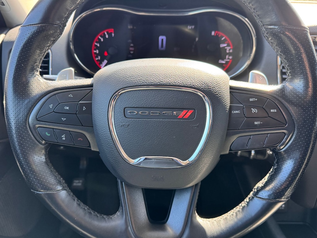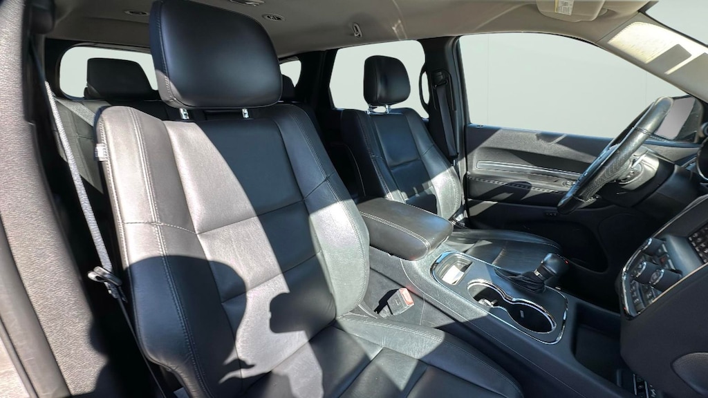 The Durango's spacious interior offers seating for up to seven passengers, with leather-trimmed bucket seats and a split-folding third-row seat for maximum versatility. Indulge in the comfort of heated front seats, a heated steering wheel, and a dual-zone automatic climate control system.