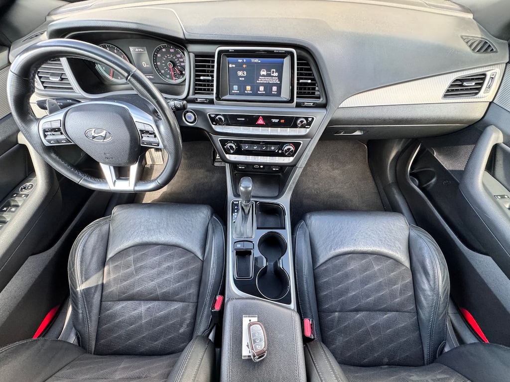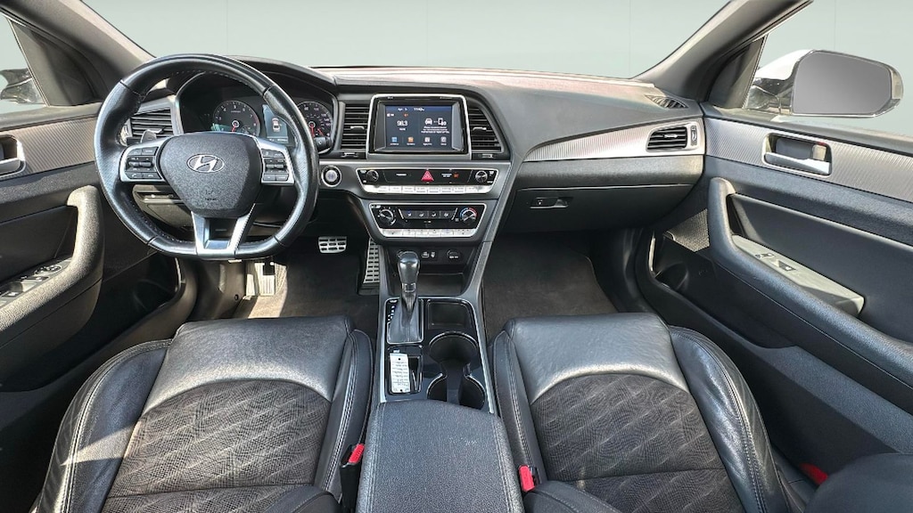 Step inside the Sonata Sport and you'll be greeted by a spacious and well-appointed cabin, featuring premium materials and thoughtful design elements. The leather-wrapped steering wheel and shift knob add a touch of sophistication, while the heated front seats and dual-zone automatic climate control ensure your comfort in any weather.