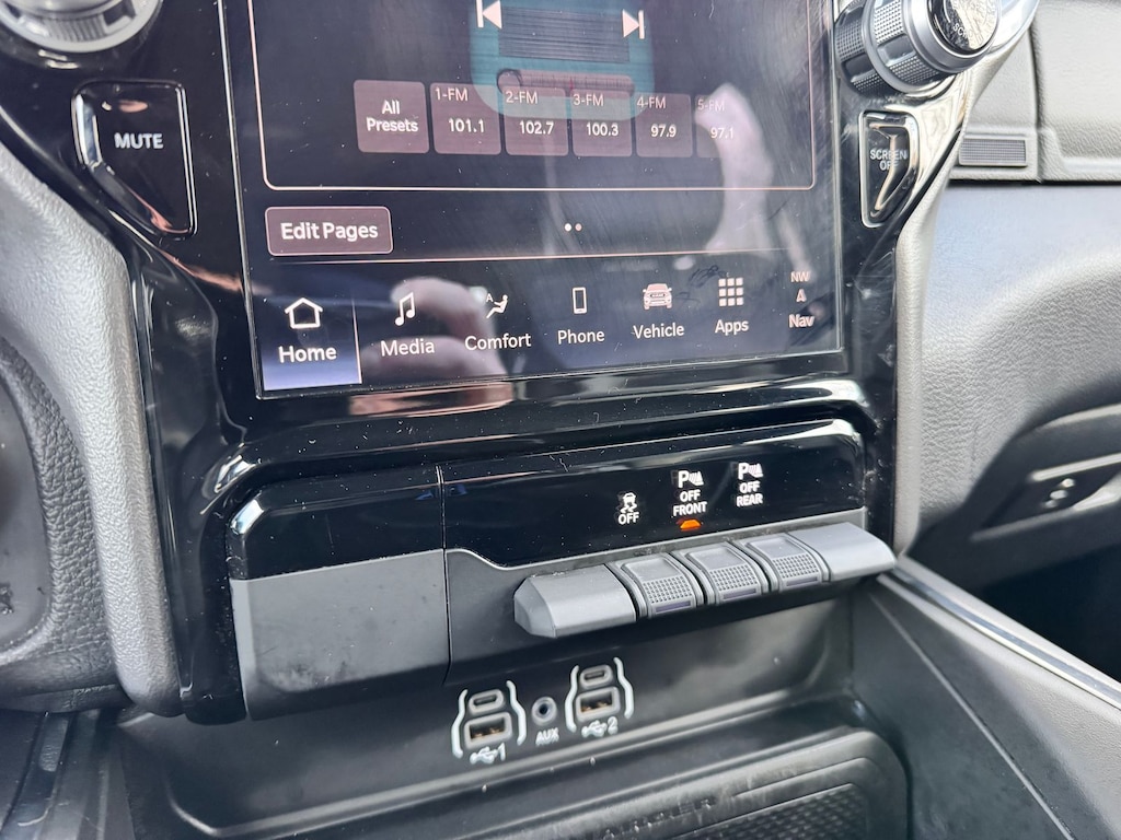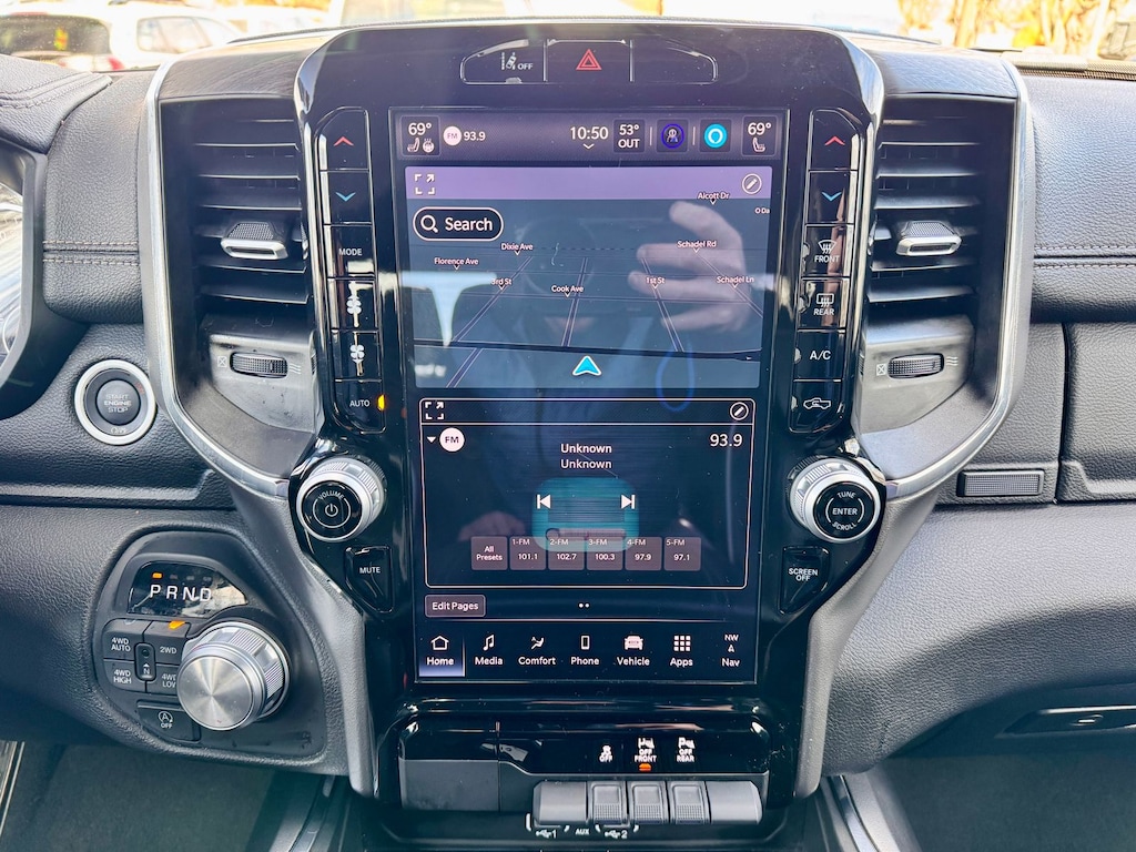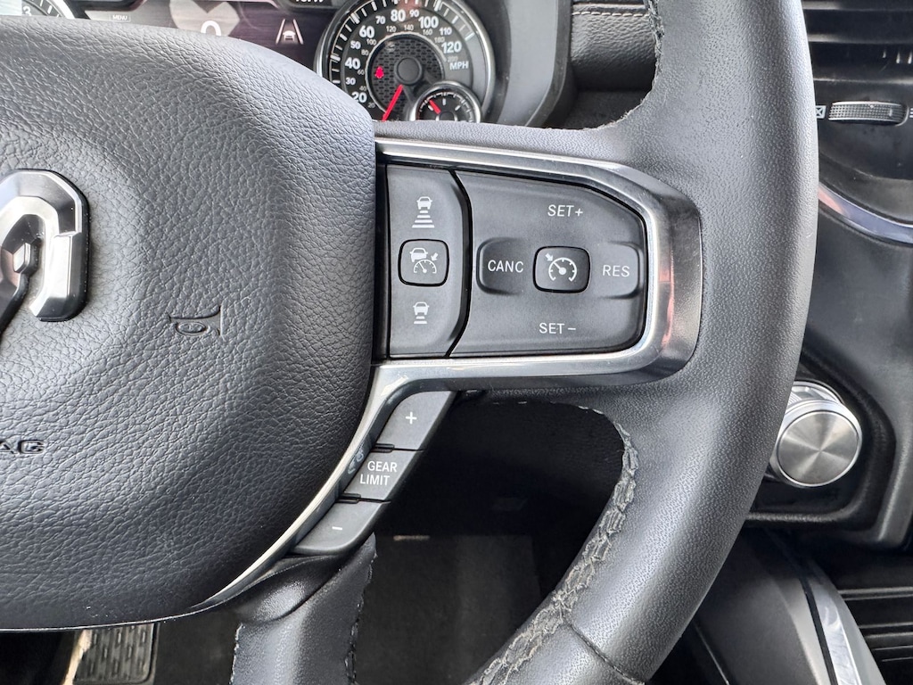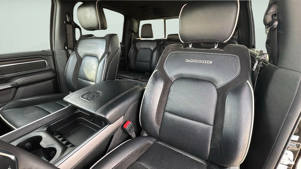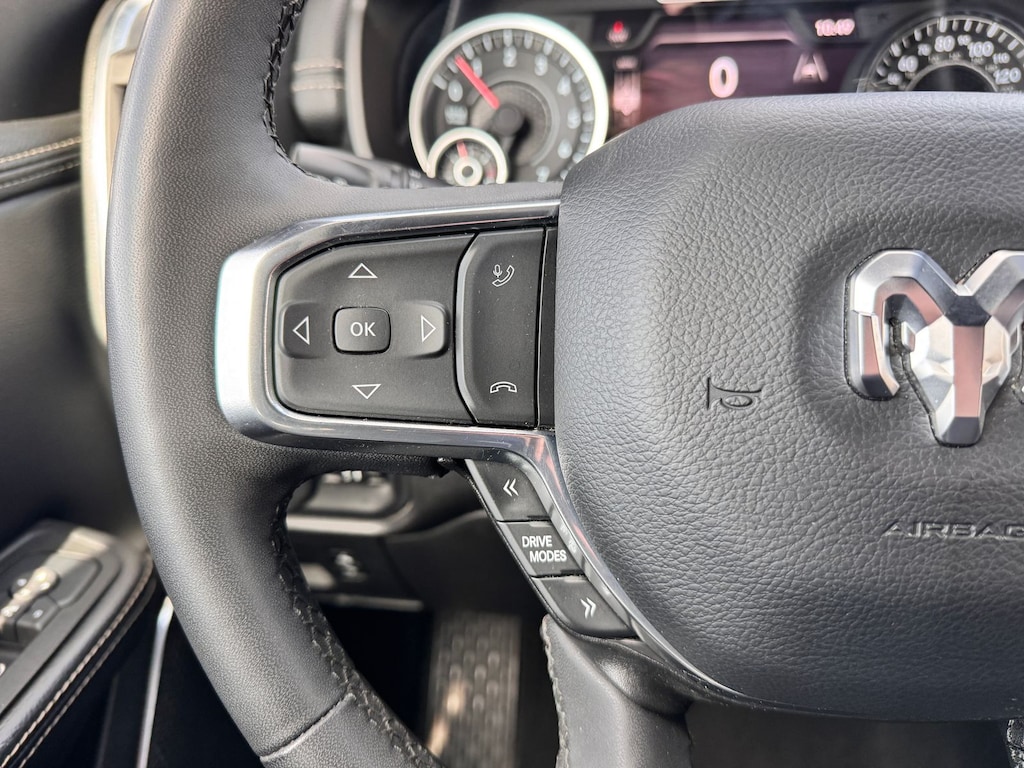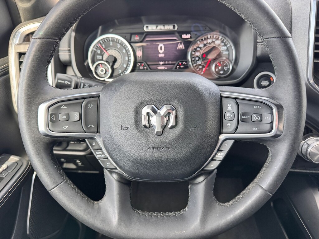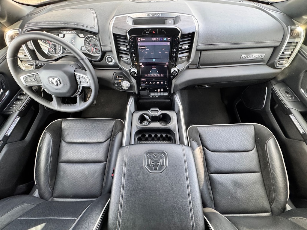 The thoughtfully designed interior of this 2025 Ram 1500 Laramie is a true haven on wheels. Sink into the plush leather seats and let the 10-speaker audio system transport you. Stay connected with the Uconnect 5 Nav system, featuring a massive 12-inch display, Apple CarPlay, and Android Auto integration.